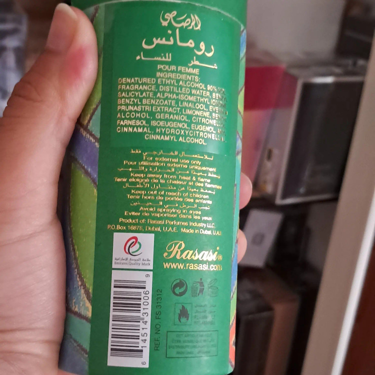 عطر ادکلن رصاصی رومنس | Rasasi Romance عطری است گرم و پودری. عطر ادکلن رصاصی رومنس | Rasasi Romance عطری است زنانه و شیک. رایحه اولیه: سنبل، صمغ گالبانیوم، گل یلانگ ، هلو، تمشک، زردآلو رایحه میانی: رز، یاس رایحه پایه: مشک، کهربا، سدر، چوب صندل سفید، روایح پودری حج ۴۵ میل تولید کمپانی رصاصی امارات کیفیت اصلی(چون فیک زیاد داره) ارسال رایگان